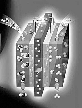 恩賽耶曼阿瓦團(tuán)隊(duì)已經(jīng)證明,一個(gè)擁有納米大小的通道的物質(zhì)能夠有效地運(yùn)輸電荷,這些通道正如完美的導(dǎo)管,可以將質(zhì)子從質(zhì)子交換膜的一邊移送到另一邊,這一點(diǎn)對(duì)提高燃料電池的效率非常關(guān)鍵。他們的發(fā)現(xiàn)將有助于研究人員設(shè)計(jì)出高效穩(wěn)定、耐用且對(duì)溫度要求不高、價(jià)格低廉的質(zhì)子交換膜。