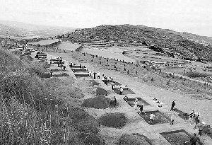 禮縣大堡子山遺址位于禮縣縣城以東13公里處的西漢水北岸,是我省早期秦文化考古與研究的重要組成部分。該墓地的發(fā)掘以及帶有“秦公”銘文青銅器的認(rèn)定,破解了秦公陵園的千古之謎?脊艑<艺J(rèn)為,大堡子山古墓的墓葬形制和地理特征說(shuō)明,甘肅禮縣一帶就是秦始皇的“老家”。
