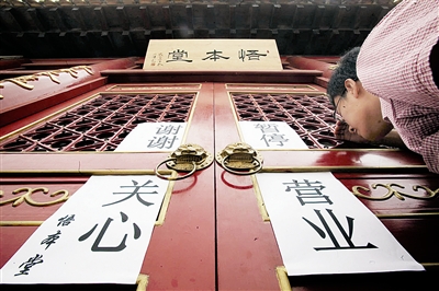 但恢復營業(yè)僅一天,今天上午9時許,位于奧體中心西南門的悟本堂卻掛出了“暫停營業(yè),謝謝關心”的告示。