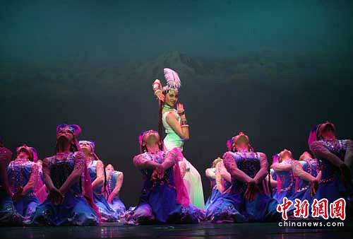 圖為新疆和田地區(qū)新玉歌舞團(tuán)精心編排的大型歌舞晚會《萬方樂奏》在烏魯木齊舉行了匯報(bào)演出,6月8日該歌舞團(tuán)將赴北京國家大劇院舉行專場演出。