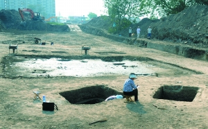 正在建設中的麗澤金融商務區(qū)涵蓋了金中都遺址西南角,是金中都城址地下文物埋藏區(qū)。因此,文物部門在其建設前先期介入勘查。前日,市文物局文物保護處處長王玉偉介紹,商務區(qū)地塊內的考古勘探于今年4月啟動,發(fā)掘至今,考古人員已清理出3處建筑基址,其中最長的一處長80米、寬10米,遺址還設有前后廊。這里已被認定為較大規(guī)模、比較罕見的古建筑遺址。