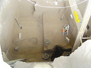 那么,與之緊鄰的1號(hào)陪葬墓是什么樣的呢?考古隊(duì)員告訴記者,此墓小于曹操墓,不是磚石墓,而是土坑墓,在迄今為止的發(fā)掘進(jìn)程中未發(fā)現(xiàn)一磚一石,全是土,且多處塌方。“土坑墓在戰(zhàn)國(guó)時(shí)期就有,魏晉南北朝時(shí)期很流行。安陽(yáng)之前也發(fā)現(xiàn)過(guò)不少土坑墓,但從來(lái)沒有見過(guò)像1號(hào)墓這么大的!痹摽脊抨(duì)員告訴記者,土坑墓有個(gè)好處,因?yàn)槎家阉,盜墓賊盜的時(shí)候要比磚石墓復(fù)雜得多。