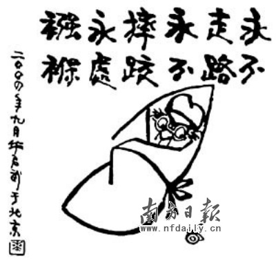 我在中央美院學(xué)習(xí)的時(shí)候,他在《人民日?qǐng)?bào)》做編輯,經(jīng)常會(huì)到中央美院。1960年,我在北京農(nóng)民運(yùn)動(dòng)講習(xí)所畫(huà)歷史畫(huà)的時(shí)候,他和美術(shù)界領(lǐng)導(dǎo)人王朝聞、蔡若虹等對(duì)我的創(chuàng)作都有關(guān)注。華君武老師為人正直,對(duì)年輕一代沒(méi)有架子,講話(huà)幽默風(fēng)趣,令人回味再三。他對(duì)年輕畫(huà)家愛(ài)護(hù)有加,就像朋友一樣沒(méi)有架子。我們?cè)谏鲜兰o(jì)80年代曾經(jīng)一起在深圳開(kāi)會(huì),當(dāng)時(shí)我畫(huà)了他的肖像畫(huà),他的題跋非常有趣。