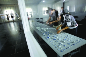 昨日上午,在圓明園內(nèi)的“文物現(xiàn)場修復展示區(qū)”,數(shù)百片大大小小的瓷片擺滿了工作臺,分揀、清洗、拼接……不同的工作人員在對瓷器進行不同的修復工作。