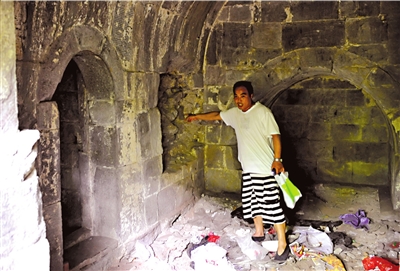 遺址內(nèi)一處標(biāo)有文物保護(hù)單位的“晏公祠”也遭人破壞,里面的石刻被鑿壞,洞穴內(nèi)還遺留著廢舊衣物、報(bào)紙、食品袋等垃圾。遺址內(nèi)的工人表示,他們是附近金山陵園的工人。但隨后趕到的金山陵園工作人員表示,此事與他們沒有任何關(guān)系,否認(rèn)此事為他們所為。