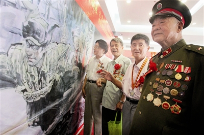 今年是抗美援朝戰(zhàn)爭60周年,6月28日至30日,“永遠崇敬最可愛的人”書畫展在北京舉行,在京的部分上將、中將、抗美援朝老戰(zhàn)士、北京時代金城書畫院的100名藝術家參觀了展覽。