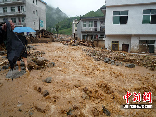 中新網(wǎng)西安7月27日電(記者 冽瑋 通訊員何衍貴)7月24日凌晨2時(shí)許,地處陜西省南部的商洛市丹鳳縣竹林關(guān)鎮(zhèn)遭遇山洪、泥石流襲擊,洪水退去后,原來平整的街道被厚度近2米的淤泥覆蓋,十噸以上的山石隨處可見。截至7月26日,暴雨致使該鎮(zhèn)失蹤9人死亡1人,經(jīng)濟(jì)損失目前尚無(wú)法估計(jì)。