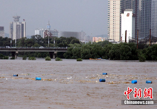 中新網(wǎng)吉林7月28日電 (許斯綺)7月28日,吉林省永吉縣境內(nèi)發(fā)生特大洪水,永吉縣經(jīng)濟開發(fā)區(qū)新亞強化工廠一批裝有三甲基一氯硅烷的原料桶被沖入松花江中,事件發(fā)生后,吉林省迅速采取有力措施,在松花江沿途設(shè)置8道防線進(jìn)行攔截。吉化公司已派出200多人組成的專業(yè)搶險隊伍協(xié)助當(dāng)?shù)卣驌啤?table border=0 cellspacing=0 cellpadding=0 align=left>