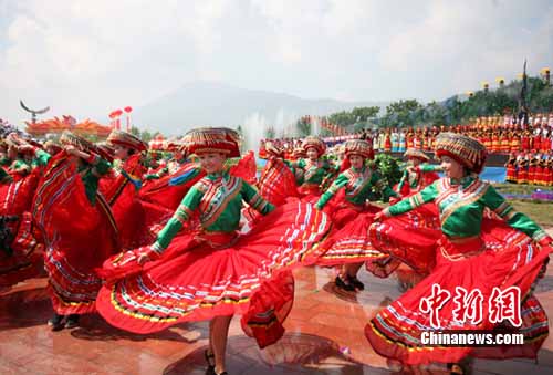 中新網(wǎng)西昌8月4日電(記者劉忠俊)4日上午,四川涼山州西昌市數(shù)千名群眾身著節(jié)日盛裝,跳起了獨(dú)具民族特色的歌舞,拉開了第六屆中國•涼山彝族國際火把節(jié)的序幕。