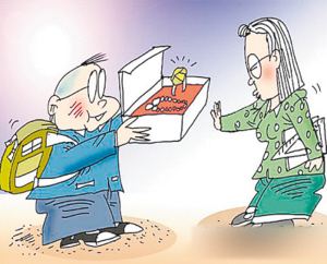 從本質(zhì)上說,教師節(jié)送禮之風實為一種見不得陽光的交易之風。這場交易的主體是老師和家長,且二者都有一種急功近利的私心在作祟。家長希望通過送禮使老師能更多地關(guān)照自己的孩子,而老師則通過送禮的多寡來選擇對孩子所謂“照顧”的方式和大小。這樣做的結(jié)果,教師失去了應有的師者尊嚴,家長則陷入社會潛規(guī)則,二者交互作用,一步步助長了這種不良的社會風氣的滋生蔓延。