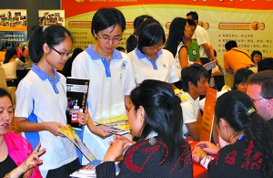深圳育才中學(xué)教務(wù)處的陳主任昨日告訴記者,“近一兩年出國的學(xué)生有明顯增加”。僅去年,該校登記的辦理出國留學(xué)學(xué)生總數(shù)便達(dá)160人,除了高三畢業(yè)生,還包括高一、高二的學(xué)生。而該校去年高三一個班前20名的優(yōu)秀學(xué)生有一半出國留學(xué),排名前七八名全走了,其中第一名去了美國。