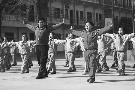校園集體舞高潮過后,鄭州市又推出了少林拳(操)走進(jìn)小學(xué)的課程。同樣是缺乏老師,這次參加培訓(xùn)的仍是體育教師。少林拳(操)在學(xué)校的教授模式也依舊是階梯式傳授,高年級學(xué)生學(xué)會后教低年級學(xué)生,體育老師除正常的體育課程外,還要負(fù)責(zé)學(xué)、教學(xué)生這套少林拳(操),顯得力不從心。