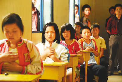 “有了教室,有了生命,我們能夠在廢墟中站立起來,開始更美好的生活,我們強(qiáng)不強(qiáng)?”——在董慧娟的帶領(lǐng)下,28個(gè)孩子舉起右臂,右手握拳,喊出“強(qiáng)!強(qiáng)!強(qiáng)!”的口號(hào)。