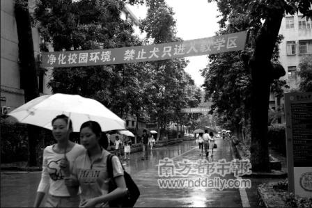 教學(xué)區(qū)域?qū)櫸锝,否則“格殺勿論”。昨日,記者獲悉,百年老校暨南大學(xué)發(fā)出“校園禁狗令”,從6月15日起,該校授權(quán)保衛(wèi)部門捕殺進入教學(xué)區(qū)的散放犬只及其他寵物。據(jù)調(diào)查,由于該校僑生較多,大學(xué)生校內(nèi)養(yǎng)寵物已經(jīng)成為一種風(fēng)氣。