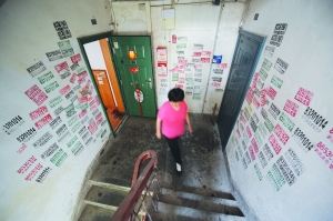 在南秀村居住了40年的吳大爺告訴記者,他沒事就用乳膠漆在樓道內(nèi)刷刷補(bǔ)補(bǔ),但通常情況都是,蓋上一層沒多久就又添“新衣”,甚至連樓梯扶手都不放過。一位居民更氣憤,有一次他們家的水電催繳單貼在樓道里,沒多久就被小廣告淹沒,自己只好為此搭上許多滯納金。