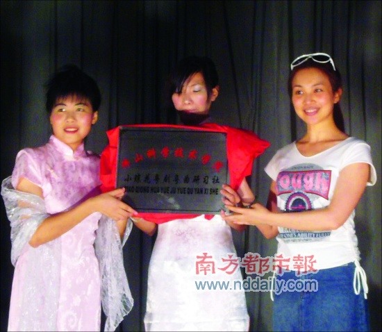 去年9月考上佛科院后,關(guān)楚賢讀工業(yè)設(shè)計(jì),但更多心思花在了與專業(yè)不搭邊的粵劇樂曲上,整天喜歡咿咿呀呀哼唱。因?yàn)檫@個(gè)很“鄉(xiāng)土”的愛好,她顯得非常另類,與愛好hit-hop、流行樂的同學(xué)們顯得格格不入。于是,關(guān)楚賢跨院系尋找志同道合的朋友,終于湊到了七八個(gè)同好者,以此為班底,再經(jīng)過一年的發(fā)展再拓展成現(xiàn)在的15人,并在學(xué)校的大力支持下正式掛牌成立社團(tuán)。
