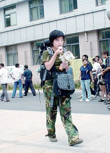 【蔣方舟】:其實還好,大家蠻強韌的,大家強韌程度還是超乎我的想象,然后唱歌干嘛的,有一點高興。但是走到最后,大家連說話都累,連喘口氣都累。當時覺得身體到達極限了,然后腿腳都不好使。我記得軍訓最后一天,我們談?wù)摶氐饺碎g打算做什么,有很多同學的理想是吃肉,然后有一個男生的理想是穿便裝,穿女裝,有的同學的理想是到澡堂洗幾個小時的澡,我的理想是要穿高跟鞋。因為我覺得快跟解放牌膠鞋融為一體了,要崩潰了。