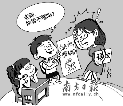 據(jù)了解,正因為“火星文”的晦澀,所以不少同學(xué)會在寫周記時使用,不想讓班主任窺見自己的心事!捌綍r媽媽愛翻我的日記,現(xiàn)在我用火星文她也奈何不了……”說起“火星文”的“妙用”時,廣州市第三中學(xué)一位女同學(xué)得意地笑了。