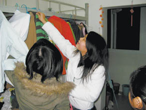 本報訊 實習生 高建慧 記者 魏瑩 文/圖 “有東西賣嗎?”晚飯過后,南大四年級女生小高坐在自己的寢室里,幾個低年級女生從門口探進腦袋問道,小高馬上熱情地領著她們來到自己的鋪位下,讓她們“盡情”挑選掛在那里的半新物品。經(jīng)過一番討價還價,幾個學妹最終以43元的價格買走了一件毛衣和一本英文書。