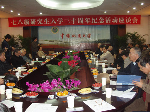 在12月6日和12月8日分別于武漢和北京舉行的兩個(gè)座談會上, 回到地質(zhì)大學(xué)母校的1978級研究生董振興,鄢泰寧, 楊昌明, 金鳴峰,韓紹緒, 岑況等著名教授和學(xué)者與此地大的一些著名老教授紛紛發(fā)言, 表達(dá)自己對鄧小平親筆批示的敬佩之情。表達(dá)自己對文革后中國研究生教育發(fā)展30年來蓬勃發(fā)展的充分肯定。(勞荊 / 地京 / 地漢)