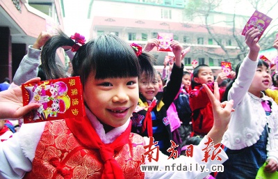 本報(bào)訊(記者/謝苗楓實(shí)習(xí)生/王芝露張晏)紅紅的中國(guó)結(jié)、大大的燈籠……昨天,廣州市140多萬(wàn)中小學(xué)生正式返校上課,雖然春節(jié)已過(guò),但孩子們還沉浸在節(jié)日的喜慶中。更開(kāi)心的是,廣州還將在今年探索以補(bǔ)助方式逐步讓來(lái)穗務(wù)工就業(yè)農(nóng)民子女接受免費(fèi)義務(wù)教育。