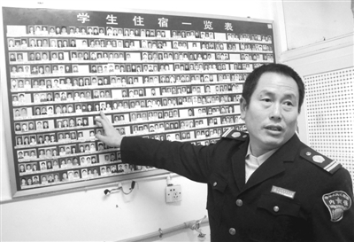 2008年10月接手11號研究生宿舍后,石軍生用三天時(shí)間制作了“學(xué)生住宿一覽表”,宿舍每個(gè)學(xué)生的大頭照片擺在墻上,“就是我不在時(shí),學(xué)生助理對照頭像也能逮住賊”。