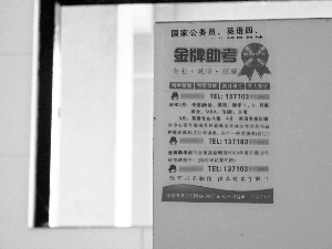 近日,廣州大部分高校均已開(kāi)學(xué),同時(shí)計(jì)算機(jī)等級(jí)以及英語(yǔ)四六級(jí)等多項(xiàng)考試也被擺上眾多考生們的日程表。而就在此時(shí),部分網(wǎng)站以及校園的公告欄,甚至是校園廁所墻上,各種惡俗小廣告也隨之現(xiàn)身,有人吹噓有各種考題及答案來(lái)源可靠,另外,出租“情侶旅店”的小廣告也悄然出現(xiàn)。記者調(diào)查發(fā)現(xiàn),絕大多數(shù)的小廣告都存在欺詐,見(jiàn)錢后隨即“人間蒸發(fā)”。校方提醒廣大學(xué)子,不要輕信各種有關(guān)考題出售的信息,一旦發(fā)現(xiàn)應(yīng)及時(shí)舉報(bào),配合打擊。