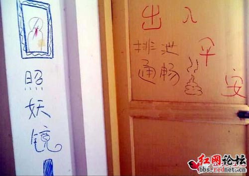 新婚快樂!天堂入口,地獄入口,照妖鏡……臨近寒假,某大學(xué)的一群女生集體在宿舍墻壁上涂鴉,創(chuàng)作了一批讓她們沾沾自喜的“杰作”。有好事者把“杰作”拍下來,發(fā)到紅網(wǎng)論壇,引來上萬網(wǎng)友回帖無數(shù)。