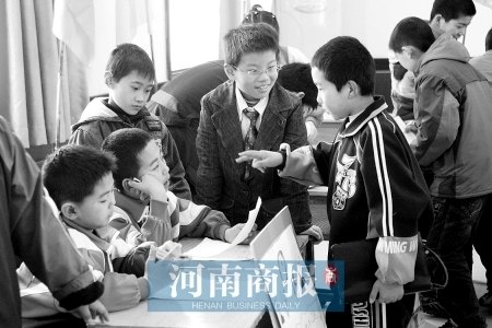 昨日上午,鄭州市中原區(qū)伏牛路第四小學組織了一場模擬“小小招聘會”,小學生特意穿上爸爸的西裝打上領帶,尋找理想崗位。