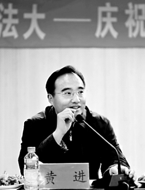 “請問黃校長的辦學目標是什么?有何治校方針?”不少政法大學的師生熱切地想了解新校長為學校帶來的新氣象,黃進的回應擲地有聲:“我們要把法大辦成開放式、國際化、多科性、研究型、有特色、高水平的大學!薄胺ù笠婪ㄖ涡!”