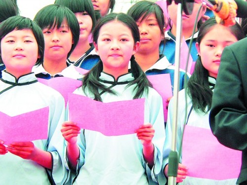 這是朗誦達人開賽以來記者見過的花樣最多的一次。在深情款款的朗誦聲中,一名女生翩然起舞,這是黎托中學專門準備的配樂配舞朗誦。教師們自創(chuàng)的詩歌成為了此次朗誦的開場——“四月風”,而此次朗誦大會的名字也正是命名為“四月風”現(xiàn)場詩文朗誦會。一張張青春的臉,一首首動人的詩,高潮在最后掀起,壓軸的是那篇著名的《少年中國說》。只見學生們身著電視劇《恰同學少年》中學生們的服裝,齊聲朗誦著“少年強則國強……”參加《少年中國說》朗誦的是黎托中學的全校師生共計950人,高亢的聲音響徹云霄。