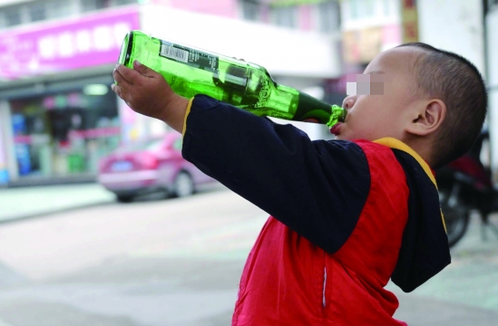 去年過年的時候,爸爸試著用筷子蘸了點啤酒讓他嘗個新鮮,沒想到這一嘗他竟然就上癮了。日子久了,小家伙覺得不過癮了,經(jīng)常趁著大人不備就偷偷喝上兩口,后來一次就能喝上半杯。最多的一次,他一下子喝了一大杯啤酒,結(jié)果喝醉了。