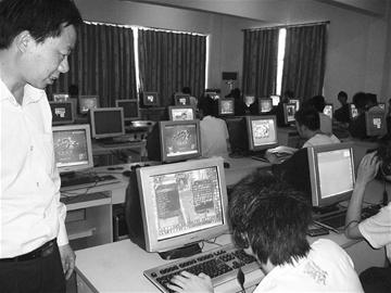 據(jù)管理電腦的一名女士介紹,這里180臺電腦全部能上網(wǎng),除上課時間外,均對學(xué)生開放。“老師要求學(xué)生不要玩游戲、聊天,但大部分學(xué)生聽不進去,仍然玩各自喜愛的游戲!睋(jù)了解,在這里上網(wǎng)每小時收0.8元。
