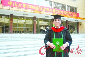 中山大學(xué)昨日舉行的兩場畢業(yè)典禮出了兩個(gè)人物,第八場畢業(yè)典禮上出了個(gè)66歲的碩士,第十一場畢業(yè)典禮則出了個(gè)66歲的學(xué)士。同樣是60多歲的年紀(jì),兩位老人同樣選擇了重回校園,背后有什么樣的動(dòng)力支撐著他們?