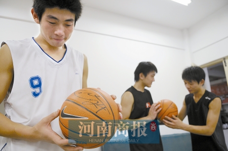喝過茶,四個大男孩算是正式投入科比門下。隨后,他們送上事先準備好的拜師禮:信陽毛尖和一對中國結(jié),中國結(jié)上印有科比全家福照片。洋師傅大喜過望,回贈了幾位“大弟子”簽名籃球和文化衫。如今這些已成了鄭大籃球隊的寶貝。