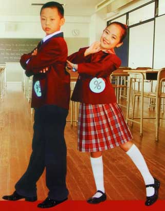 哈爾濱市確定的新款學(xué)生裝上縫制了統(tǒng)一標(biāo)志———“向上一族”。標(biāo)志外形為歐式城市風(fēng)格,上端有北國冰城的象征———雪花圖案。標(biāo)志內(nèi)部設(shè)計成白色的鴿子演化成一本展開的書,背景用暗紅色的色塊寓示“書山有路勤為徑”,象征著全市中小學(xué)生積極向上,哈市教育和諧、蓬勃發(fā)展。
