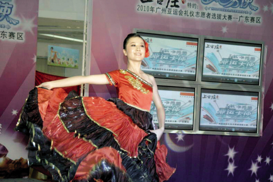 “卡丹路亞運(yùn)天使·廣州2010年亞運(yùn)會(huì)禮儀志愿者選拔大賽”廣東賽區(qū)的首場(chǎng)晉級(jí)賽9月13日下午在廣州展開。廣州分賽區(qū)500多位報(bào)名參賽者中通過(guò)初步篩選的前30名選手,經(jīng)過(guò)一番現(xiàn)場(chǎng)比拼后,最終有20名晉級(jí)廣東賽區(qū)“百?gòu)?qiáng)”。