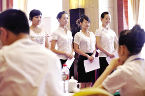 “這都是最基本的時政常識。”該公司考官稱,應聘空乘綜合素質(zhì)考評很重要,不管考生如何好,這點通不過是無法入選的,而在這關(guān)被淘汰的選手不在少數(shù)。據(jù)悉,昨天有400多人報名,通過初試的有40余人。