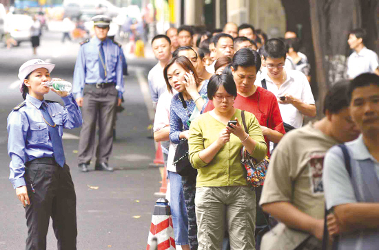 報名點上午冷熱不一:海珠排幾百米長龍,越秀排隊者僅為上次五分一