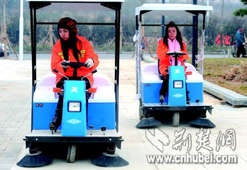 三名女大學(xué)生到崗后,一直工作在環(huán)衛(wèi)第一線。年齡稍大的付莎莎目前已當(dāng)上了班長,帶著早、晚班兩個小隊(duì)24人。記者采訪時,付莎莎在布置完晚班的任務(wù)后,就拿著鐵夾子、鐵撮箕和同事一起風(fēng)風(fēng)火火地干起活來。年齡稍小的羅瑛、付琴菲,前幾天被抽調(diào)出來,主要負(fù)責(zé)駕駛新添置的電動清潔車。