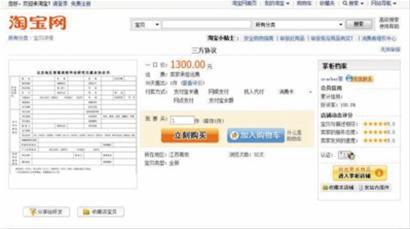 昨日,記者在淘寶網(wǎng)試著搜索“三方協(xié)議”這一關(guān)鍵詞,發(fā)現(xiàn)確有賣家,而且數(shù)量不少。這些賣家大部分標(biāo)價(jià)400元,最低也有300多元,這些合同大多標(biāo)明了一些江蘇地區(qū)高校,其中一份北京地區(qū)的三方協(xié)議則開價(jià)高達(dá)1300元。交易記錄顯示,400元和1300元的協(xié)議近日均有買家。