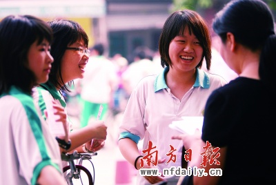 而來得早的學(xué)生們圍在學(xué)校對面的小賣部門前,三五成群地吃著雪糕聊天!安慌鲁詨亩亲佑绊懣荚嚸?”面對記者的提問,佛山四中3名女生笑著說:“不怕。”當(dāng)被問及緊不緊張的時候,其中一個戴眼鏡的女生笑著說:“說緊張那是以前的事了,經(jīng)過這么長時間復(fù)習(xí),心態(tài)早就調(diào)整好了。”她們的家長都沒來也不準(zhǔn)備來送考!拔也蛔屗麄儊,來不來沒什么分別,他們還要上班!奔易⌒l(wèi)國路的小劉對考后對答案也不忌諱,“當(dāng)然是最好不要對了,不過對不對沒什么關(guān)系!