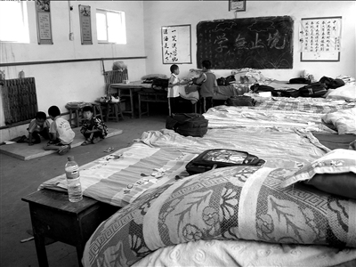 考慮到安全問(wèn)題,事發(fā)后,在校住宿的十余名學(xué)生被轉(zhuǎn)移,臨時(shí)安置在教室內(nèi)過(guò)夜。截至昨晚記者發(fā)稿時(shí),孩子們?nèi)匀恢荒茉诮淌覂?nèi)拼課桌當(dāng)床過(guò)夜。
