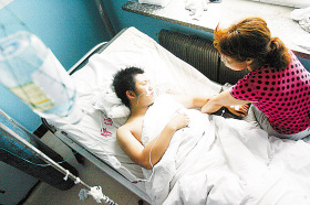 “我們什么情況都不知道,接到學(xué)校通知時,孩子已經(jīng)被送到醫(yī)院了!”趙醒的母親不斷地給兒子揉手,“學(xué)校只告訴家長,孩子出事了,別的也沒說什么!薄昂⒆邮潜焕渍鹇榱!”趙醒的奶奶說。