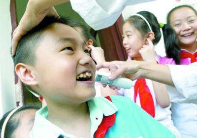 “校長,孩子昨天發(fā)寒熱了,今天就不來上課了。 ”今天一早8:00,吳奶奶趕到虹口三中心小學(xué),抱歉地向校長請假。 “沒關(guān)系,落下的課老師會幫著補(bǔ)上的,在家好好休息。 ”校長安慰說。今天是開學(xué)第一天,滬上中小學(xué)都 “繃”緊嚴(yán)防甲流這根“弦”,不少學(xué)校的校醫(yī)和校長一起站在校門口,迎接每位學(xué)生的到來。少數(shù)體溫超過37.5℃的學(xué)生都被勸回,部分發(fā)燒的孩子也自覺留在家休息。