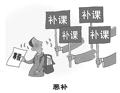 據(jù)《瀟湘晨報(bào)》1月20日?qǐng)?bào)道,一名學(xué)生在網(wǎng)上發(fā)出“反補(bǔ)課倡議書”,號(hào)召全國(guó)學(xué)校成立“中國(guó)反補(bǔ)課學(xué)生聯(lián)盟”。網(wǎng)帖中,這名學(xué)生講述了自己在寒假補(bǔ)課時(shí)的心情:“補(bǔ)課的重壓下,神經(jīng)搖搖欲墜,做夢(mèng)都?jí)舻紸BCD!