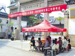 每年的高考,在大多數(shù)人的印象中,孩子在室內(nèi)考,家長在室外“烤”的景況似乎成為高考的“固定畫面”,而今年的(江蘇)常州高考中,孩子在教室內(nèi)考試、家長在外受烈日烤的景象沒有了,廣大家長對孩子的高考看得更加淡定,昨天是今年高考的第一天,常州的省常中、一中、二中等19個考點平穩(wěn)有序地進行,城管交警等部門努力為考生營造安靜的考試環(huán)境。昨日上午的高考語文考試結(jié)束之后,不少教師認(rèn)為,今年的語文考試比較貼近時代性。