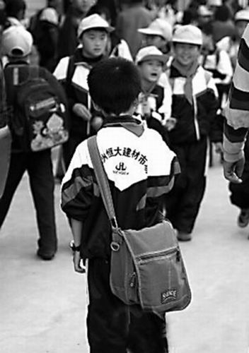 背著廣告上學的孩子