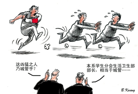 區(qū)區(qū)一件衛(wèi)生檢查的小事,何以弄成一樁血案?學生干部及學生之間的溝通對話能力為何如此之弱以至于拔刀相向,值得家長及教育人士思考。而學生會干部的“過度執(zhí)法”,是否也折射了學生會這個“準官場”的惡習呢? 文/丫丫