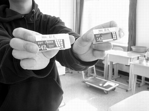 據(jù)市人事局考試中心主任陳雷介紹,首塊作弊橡皮被繳獲后,監(jiān)考人員立即在各考場(chǎng)展開(kāi)巡查,很快,又有幾塊作弊橡皮露出原形。陳主任說(shuō),這是沈陽(yáng)首次查獲橡皮式接收器,普通屏蔽器無(wú)法屏蔽其接收信號(hào)。